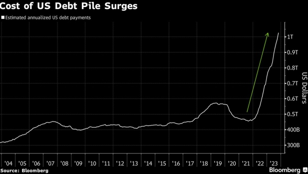 周二(11月7日),彭博社分析显示,截至上月底,美国政府债务的年化利息支出预计已突破1万亿美元。过去19个月中,这一预测金额比当时预测的同等数字翻了一番。