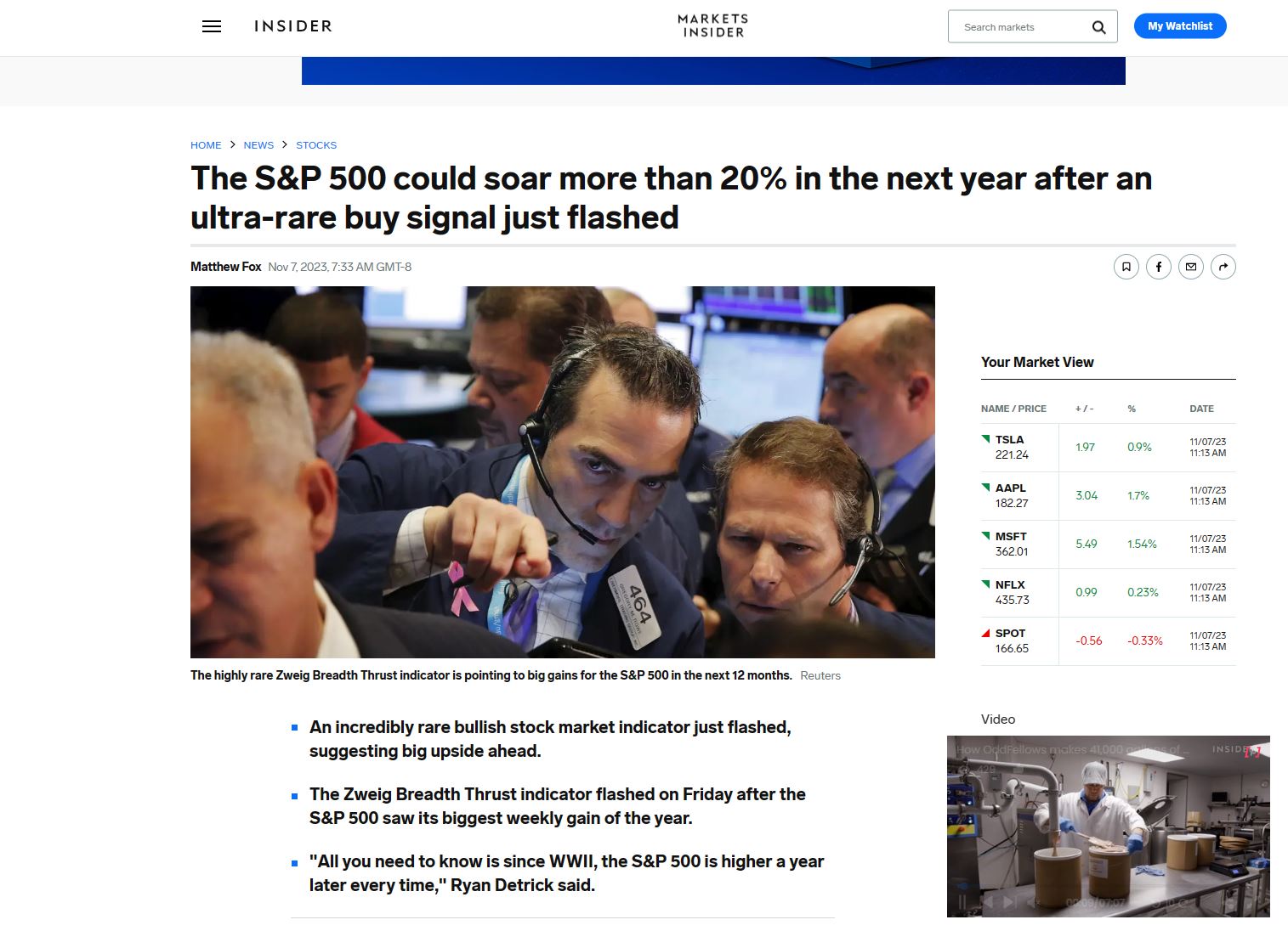 2023-11-08 07:24:38据Insider报道,一项罕见的牛市股市指标刚刚发出信号,这个信号表明,自2022年10月开始的标普500指数牛市行情还有更多的上涨空间。