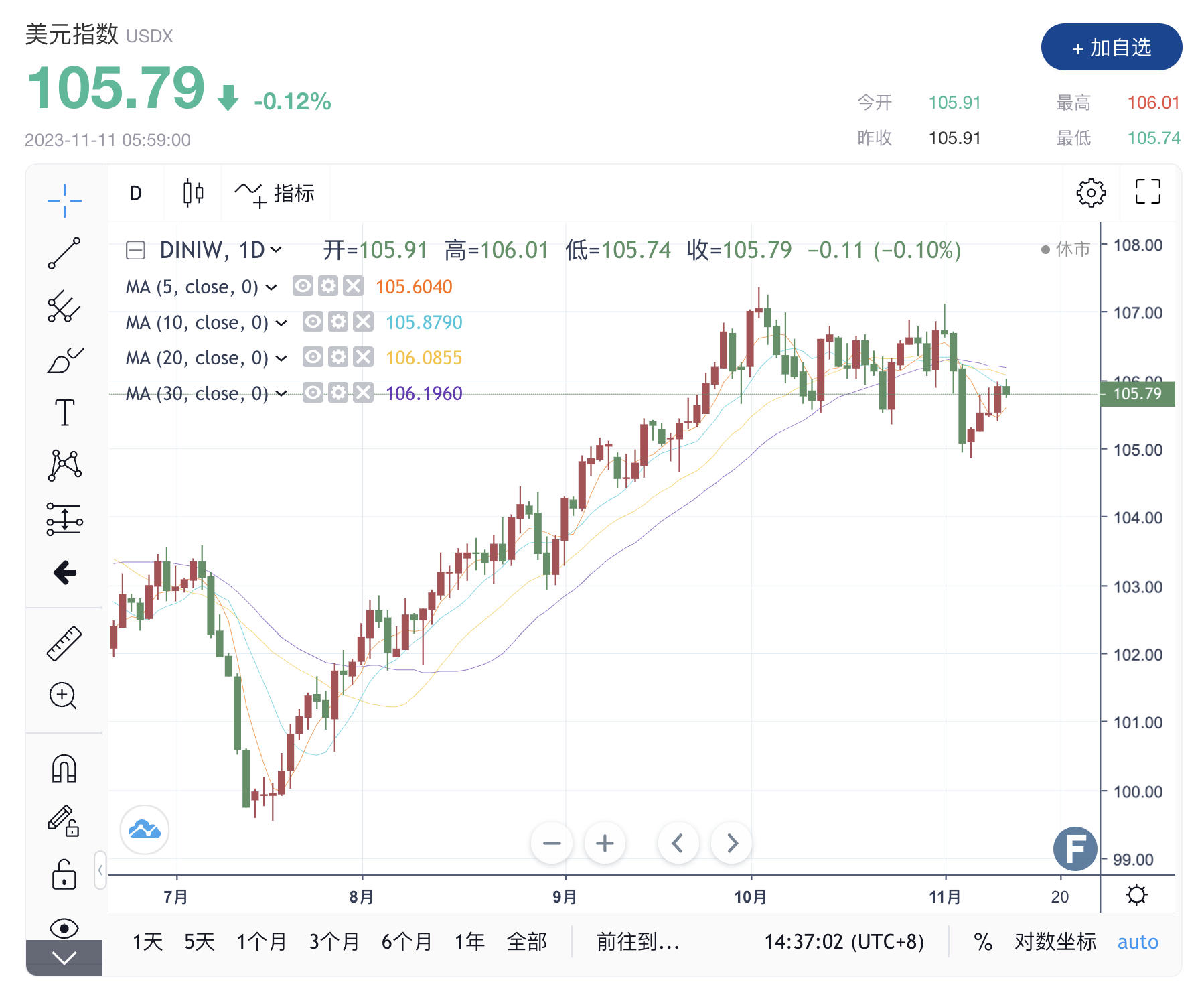 从上周走势来看,美元指数有可能回落宽幅区间,支撑位在 105.50,阻力位在107.20。市场期待另一个重大突破即将到来。