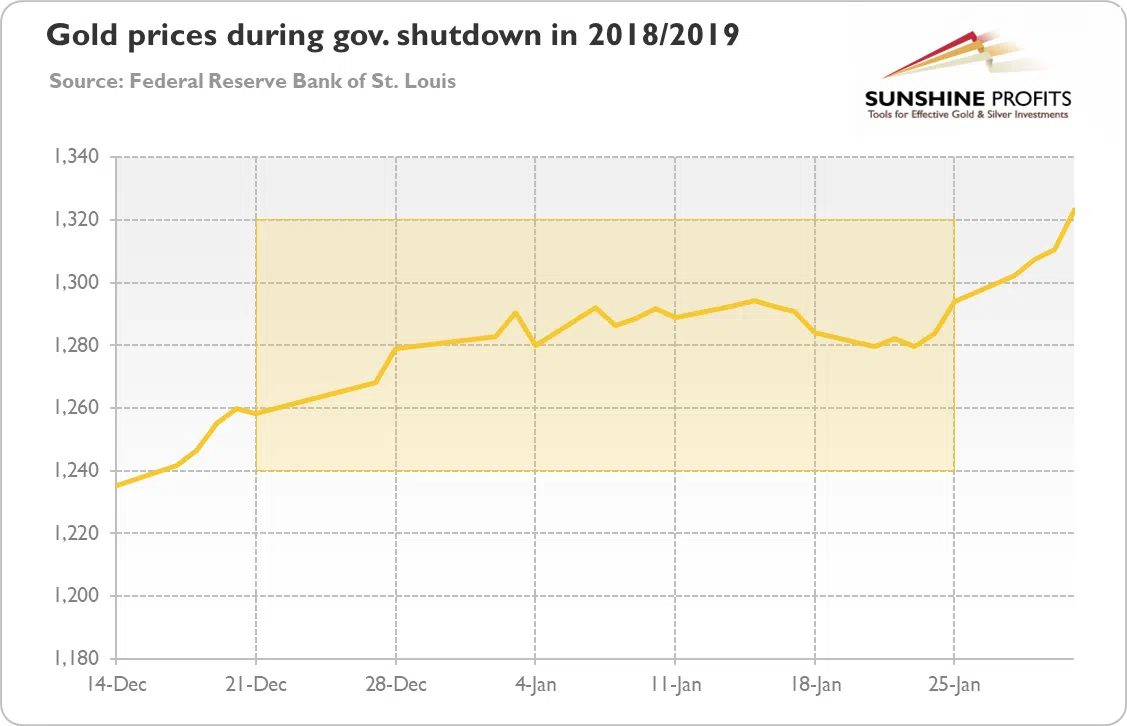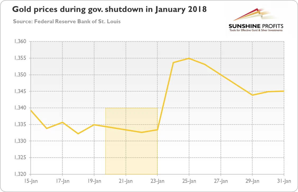 然后,在2018年初,在1月20日至23日政府短暂停摆期间,黄金价格实际上有所下跌。
