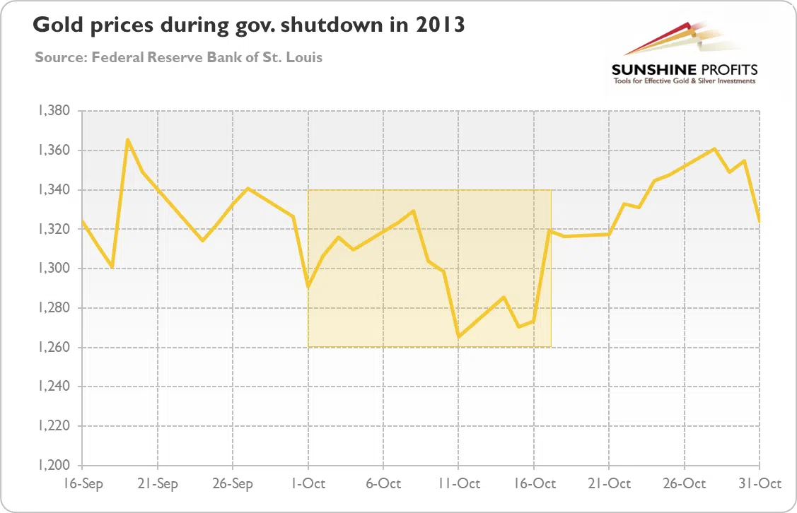 2013年10月1日至17日联邦政府停摆期间,金价有所反弹,但基本持平。