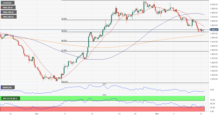 2023-11-14 14:17:02周二(11月14日)亚市尾盘,现货黄金窄幅震荡,金价目前位于1945美元/盎司附近。FXStreet首席分析师Valeria Bednarik最新撰文,对黄金技术前景进行分析。