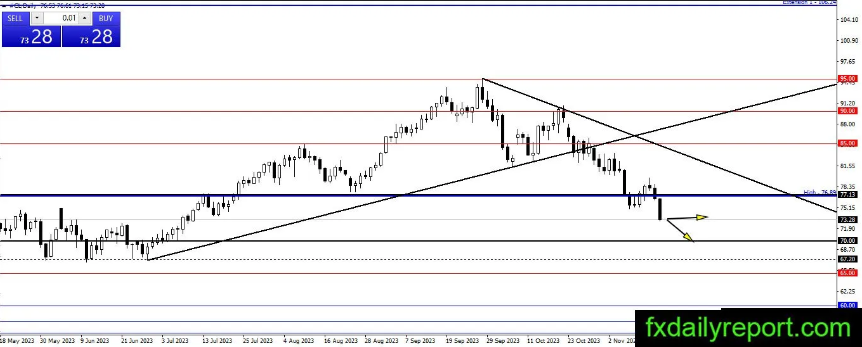 根据fxdailyreport的分析,77.13美元的支撑位无法抵御原油价格的看跌压力。原油价格继续看跌,70.00美元是下一个下跌支撑目标。交易者将等待70.00美元附近的看涨反应和建立多头头寸的机会。