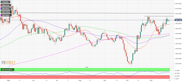 Mehta指出,周五,在交易清淡的情况下,黄金价格在2000美元/盎司附近交易。在日线图技术面看涨的背景下,黄金买家仍抱有希望,目标是突破2000美元/盎司。