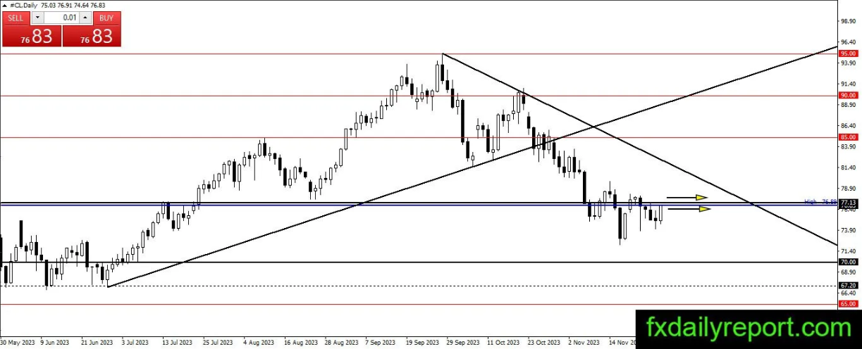 原油价格继续坚守在77.13美元附近,等待下一个走势方向的确认。整合将会发生,交易者还不会建仓。交易者还可以利用目前的情况进行吸筹,将70.00美元至77.13美元区域作为建立多头头寸的地方。