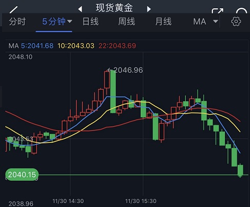 2023-11-30 17:05:04周四(11月30日)欧市盘中,现货黄金短线突然一波跳水,金价正逼近2040美元/盎司关口。本文对日内黄金技术前景进行分析。