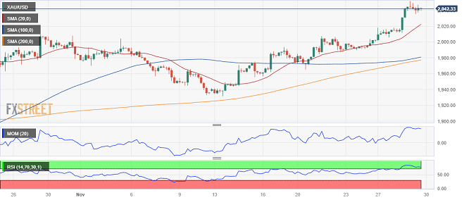 2023-11-30 15:15:29周四(11月30日)亚市尾盘,现货黄金维持日内小幅跌势,金价目前交投在2042美元/盎司附近。FXStreet首席分析师Valeria Bednarik最新撰文,对黄金技术前景进行分析。