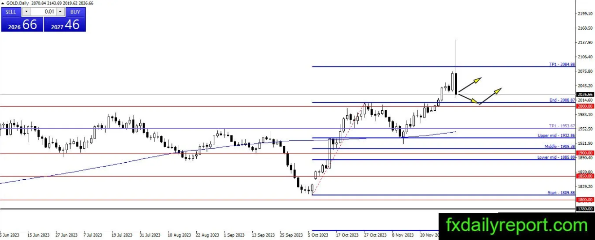 周二金价大幅上涨,突破2100美元。然而,价格随后则出现了看跌反应,并一度下跌至2030美元。在金价企稳之前,看跌局面可能会持续几天。当市场在靠近支撑点附近出现看涨反应时,交易者可以利用下跌机会寻找多头头寸的机会。
