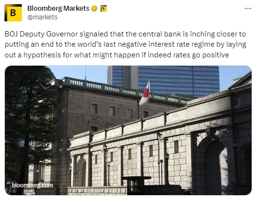 这些言论是日本央行领导层迄今为止最明确的信号,表明当局正在考虑如果结束负利率将会产生什么影响。这些观点可能会强化日本央行观察人士的预期,即该行将在2024年中结束负利率。