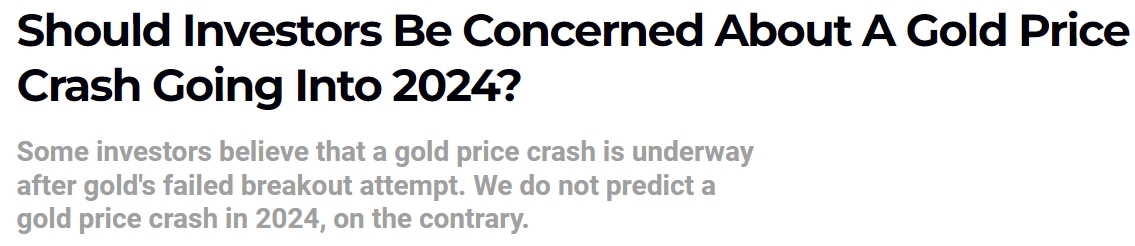InvestingHaven不约而同地提到了黄金2024年大崩盘的预告,文章指出,这里谈论的金价暴跌实际上是指下跌至少30%,将金价推回到2022年的低点,与2022年4月至9月期间类似的跌幅。