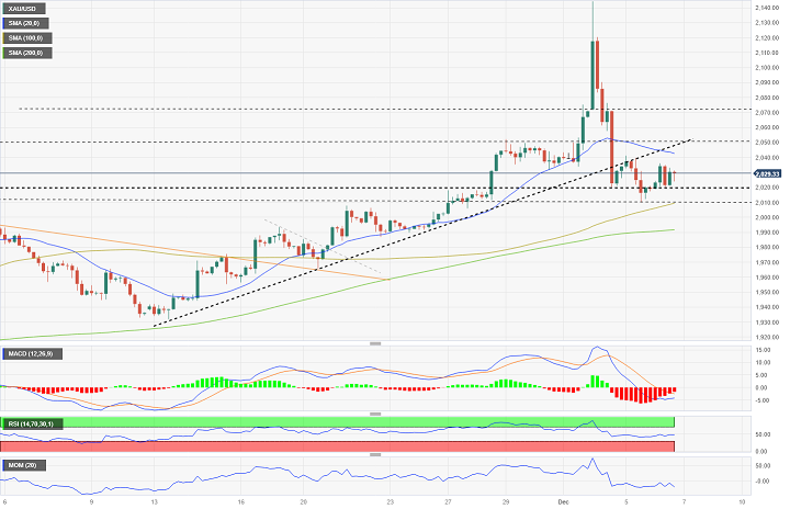 2023-12-07 13:51:38周四(12月7日)亚市尾盘,现货黄金基本持稳,金价现报2026美元/盎司附近。FXStreet分析师Matías Salord最新撰文,对黄金技术前景进行分析。