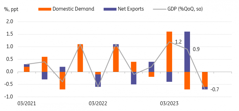 与此同时,第一季GDP从0.9%大幅上调至1.2%,导致全年GDP上调。因此,现在市场预计2023年GDP同比增长2.0%。然而,上周发布的其他数据,包括劳动力现金收入、家庭支出和经常账户,表明第四季经济增长将出现反弹,因此ING认为日本央行将在2024年初改变政策。
