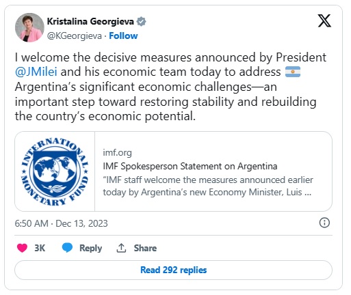 在第一波重量级行动之前,米莱在上周日发表了就职演说。他警告说,阿根廷人将不得不忍受数月的痛苦,而他将努力把国家从前任遗留下来的经济危机中拉出来。