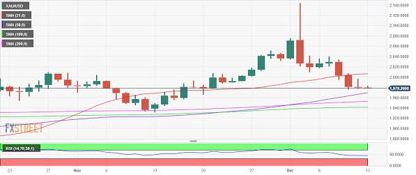 Mehta指出,从日线图上可以看出,金价仍有望测试50日简单移动平均线(SMA)1970美元/盎司。14日相对强弱指数(RSI)走低,同时低于50水平,支持金价进一步下行的理由。