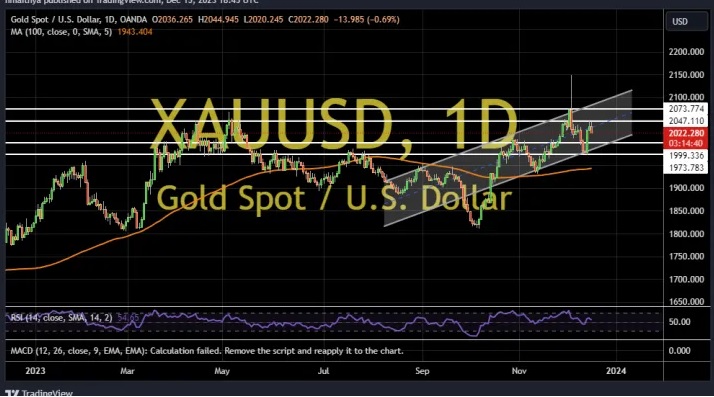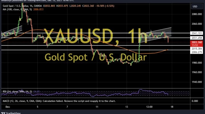 2023-12-18 10:52:40周一(12月18日)亚市盘中,现货黄金维持日内小幅反弹走势,金价现报2021美元/盎司附近。受威廉姆斯鹰派言论打击,现货黄金上周五重挫近17美元。知名财经网站FXDailyReport分析师Nicholas Kitonyi撰文,对黄金后市走势进行分析。
