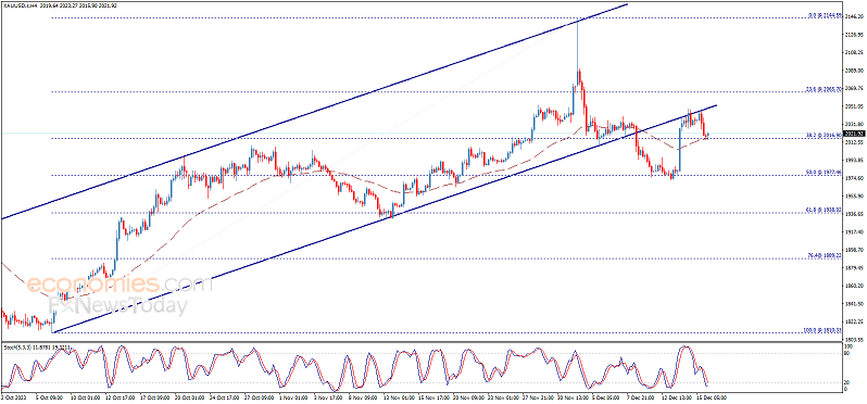 2023-12-18 16:45:55周一(12月18日)欧市早盘,现货黄金维持日内反弹走势,金价目前交投在2024美元/盎司附近。本文对日内黄金技术前景进行分析。