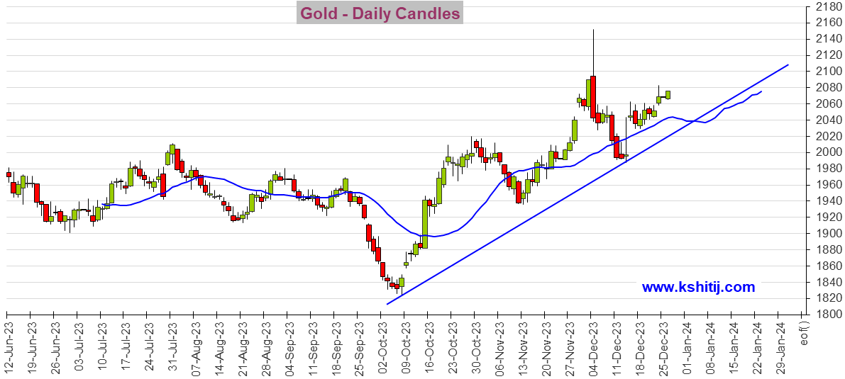 2023-12-26 14:00:34周二(12月26日)亚市尾盘,黄金期货维持日内反弹走势,期金目前位于2074美元/盎司附近。Kshitij咨询服务团队(Kshitij Consultancy Service)周二最新撰文,对黄金期货、白银期货、原油期货和铜期货后市走势进行前瞻分析。