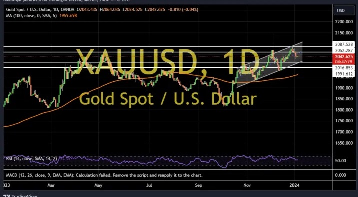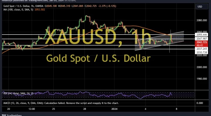 2024-01-08 09:45:47周一(1月8日)亚市早盘,现货黄金基本持稳,目前交投在2045美元/盎司;上周五“非农日”金价出现近40美元巨震行情。知名财经网站FXDailyReport分析师Nicholas Kitonyi撰文,对黄金后市走势进行分析。