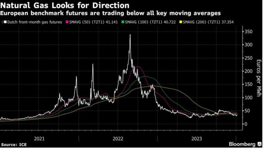 欧洲的气温可能正在下降,这增加了对供暖和发电厂燃料需求增加的预期,但充足的库存或在短期内控制价格。当前天然气储存水平约为86%,高于五年平均水平。即便如此,红海局势不断升级和天气的不可预测性将使交易员保持警惕。新年伊始,荷兰基准合约的隐含波动性略有上升。最近几周,期货交易在很大程度上呈横向模式,低于关键移动平均线,与2022年该地区能源危机期间创下的记录涨幅形成鲜明对比。