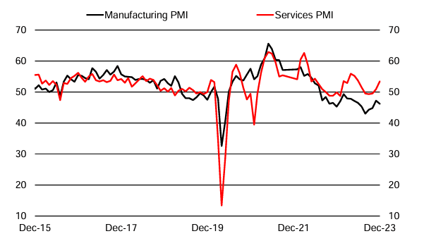 周三(1月24日),标准普尔全球(S&P Global)将公布1月份采购经理人指数(PMI),该指数将为2024年第一个月的经济表现提供强有力的线索。