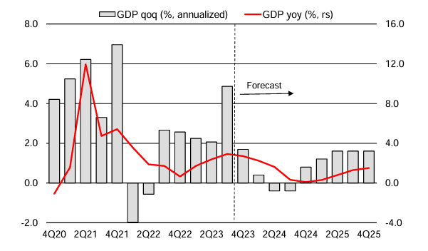 (第四季度GDP增速可能放缓至温和水平,来源:联合信贷银行)