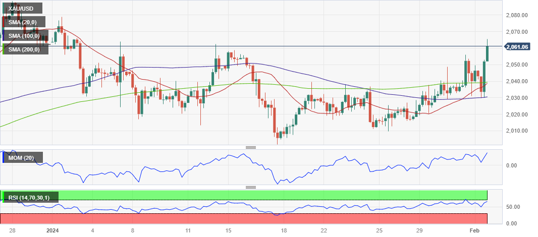 2024-02-02 09:40:35周五(2月1日)亚市盘中,现货黄金在昨日大涨之后维持坚挺走势,金价目前位于2054美元/盎司附近。FXStreet首席分析师Valeria Bednarik撰文,对黄金技术前景进行分析。
