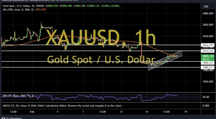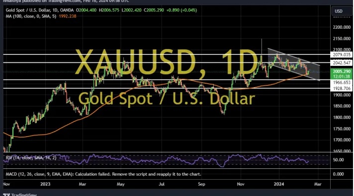 2024-02-19 09:51:31周一(2月19日)亚市早盘,现货黄金小幅上涨,一度触及2020关口,目前交投于2018.32美元/盎司附近,涨幅约0.3%,因美元小幅走弱,给金价提供支撑。FXDailyReport分析师Nicholas Kitonyi撰文,对黄金后市走势进行分析。