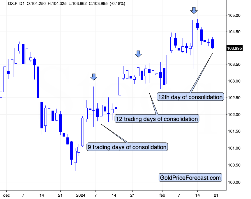 美元指数过去常常以假跌来结束盘整,尤其是2月初,底部就这样形成了。这意味着周二的下跌并不像乍一看那么悲观,相反,盘整似乎正在结束,美元指数的再次走高可能指日可待。