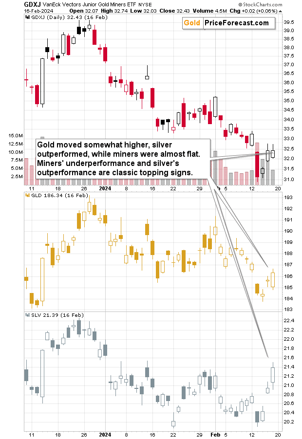 “在贵金属行业价格下跌之前,我们往往会看到两种类型的表现,即矿商的疲软和白银的强势,”Przemyslaw进一步分析指出。