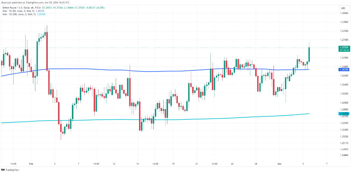 在周三英国预算公布之前,英镑/美元小幅上涨0.24%至1.2720。财政部长亨特一直在努力平息有关大选前大幅减税的猜测。