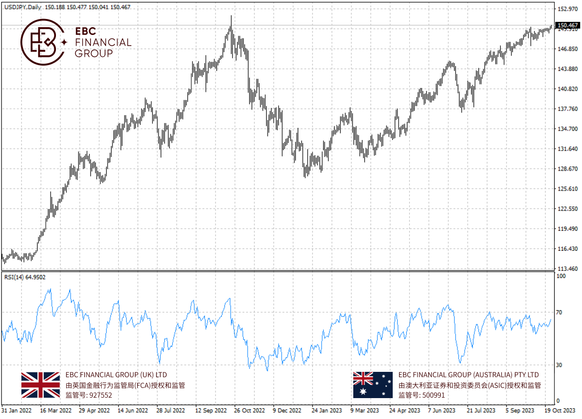 2023-10-26 00:00:00 周四(10月26日)美元兑日元重回150上方,使得外汇干预风险进一步上升,也给日本央行更大压力去调整货币政策。