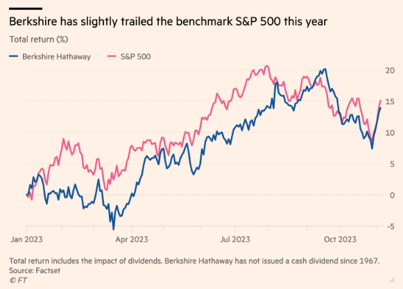 伯克希尔的A股今年已经上涨了近14%。在9月19日达到历史高点后,股价已较峰值下跌了约6%。