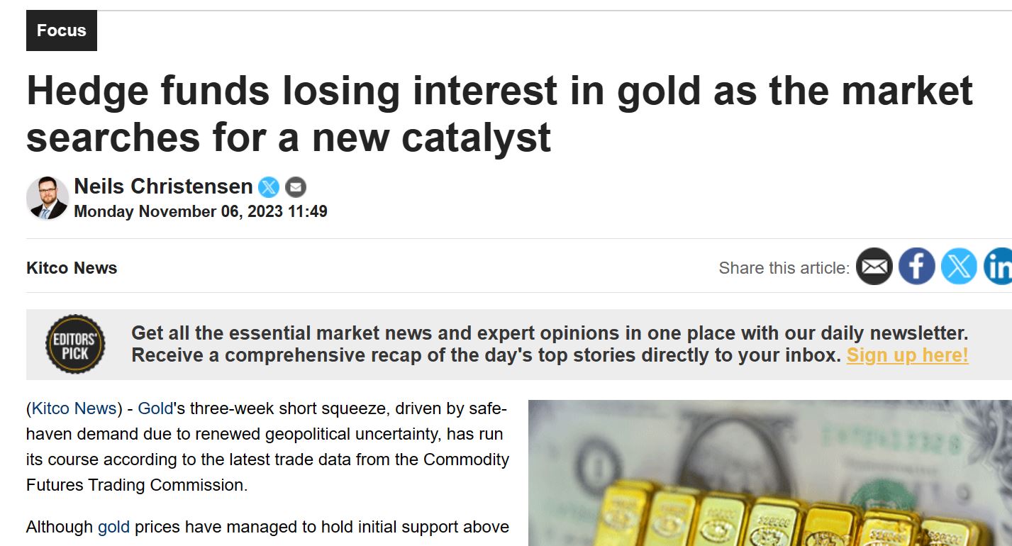 2023-11-07 08:32:42据Kitco News报道,根据美国商品期货交易委员会(Commodity Futures Trading Commission)的最新贸易数据,在政治不确定性再度引发的避险需求推动下,黄金的三周空头挤压已经结束。