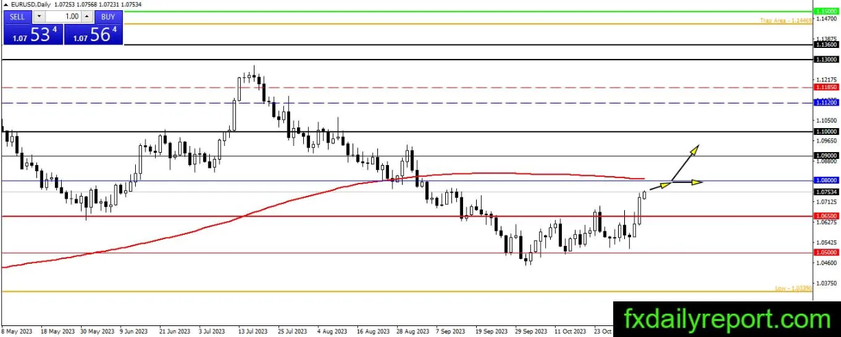 欧元/美元继续走强,并正在朝着200日移动平均线和1.0800的方向继续前进。目前,中期趋势方向已发生变化,对200日移动平均线的测试可能只是暂时的,如果欧元/美元遭遇假突破并且下跌,但交易者需要留意在1.0650点附近可能出现的支撑,因为这可能引发市场的看涨反应。