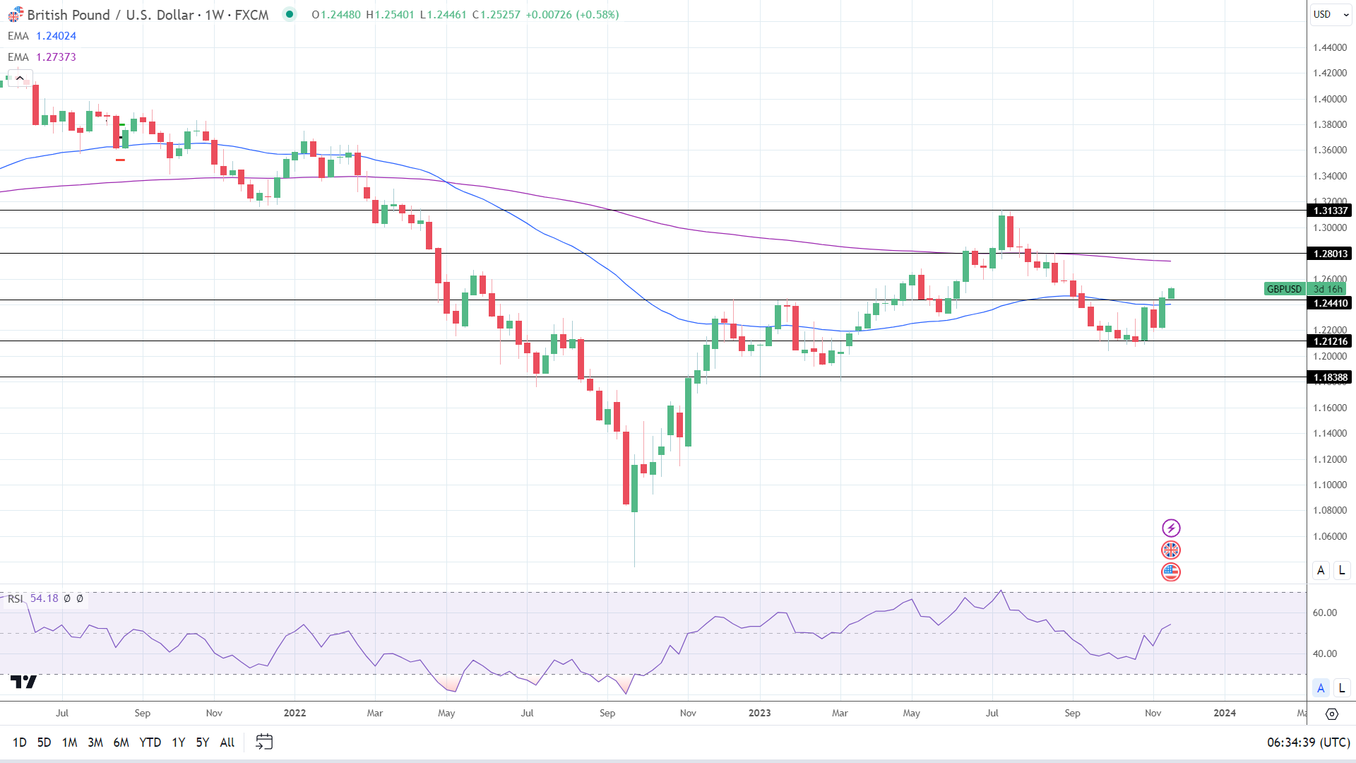 英镑/美元的近期趋势取决于英国央行和美联储货币政策的前瞻性指引。然而,私营部门采购经理人指数(PMI)数据可能表明英国央行将首先采取降息举措。英国采购经理人指数将于周四(11月23日)公布,美国数据将于周五(11月24日)公布。