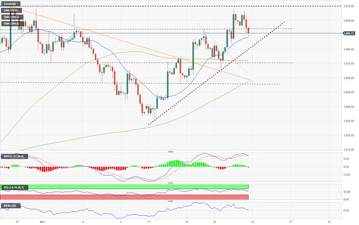2023-11-23 10:39:53周四(11月23日)亚市盘中,现货黄金小幅上涨,目前交投于1993.34美元/盎司附近。FXStreet分析师Matías Salord最新撰文,对黄金技术前景进行分析。